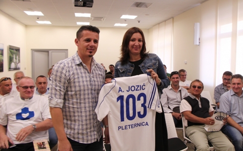 Prije utakmice za ekipu Humanih zvijezda organiziran je prijem u Hrvatskoj knjižnici i čitaonici gdje ih je dočekala gradonačelnica Antonija Jozić. - Pozdravljam vas u malom gradu široke slavonske duše, iskrenih, toplih ljudi koji su okrenuti svojoj obitelji i Bogu. Želim vam ugodan boravak u našoj Pleternici, da steknete lijepe dojmove koje će te ponijeti svojim kućama te da nam se ponovno vratite - kazala je Jozić te je gostima podijelila prikladne poklone. U znak zahvalnosti ekipa Humanih zvijezda je gradonačelnici uručila majicu sa simboličnim brojem 103 koji predstavlja 103. akcija humanih zvijezdi.