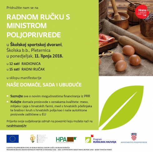 Od ponedjeljka 5. ožujka 2018. započela je manifestacija ‘NAŠE DOMAĆE, SADA I UBUDUĆE’ kojom će kroz 21 županiju Ministarstvo poljoprivrede, Hrvatska poljoprivredna agencija i Agencija za plaćanja u poljoprivredi, ribarstvu i ruralnom razvoju promovirati hrvatske poljoprivredne proizvode te novosti u Programu ruralnog razvoja.